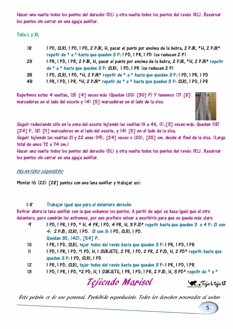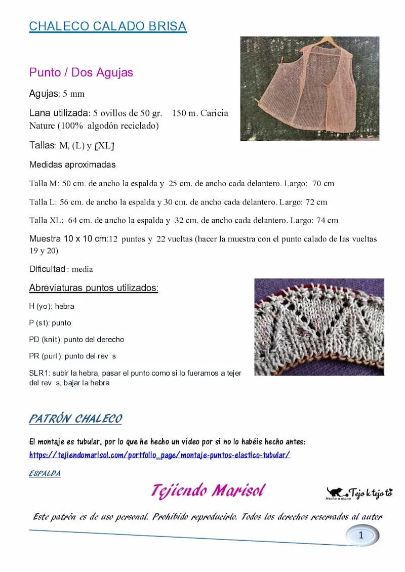 Este patrón empezó por un encargo que me hizo mi madre para que le hiciera un chaleco igual que uno que tenía y que ya estaba deteriorado por los años pero le encantaba. Y me puse manos a la obra y sí que salió casi igual que el original, y ella con sus ochenta y tantos lo luce de maravilla. Aquí os dejo las fotos y el patrón. Espero que os guste. Besitos y FELIZ 2022 de todo corazón!!!!!!