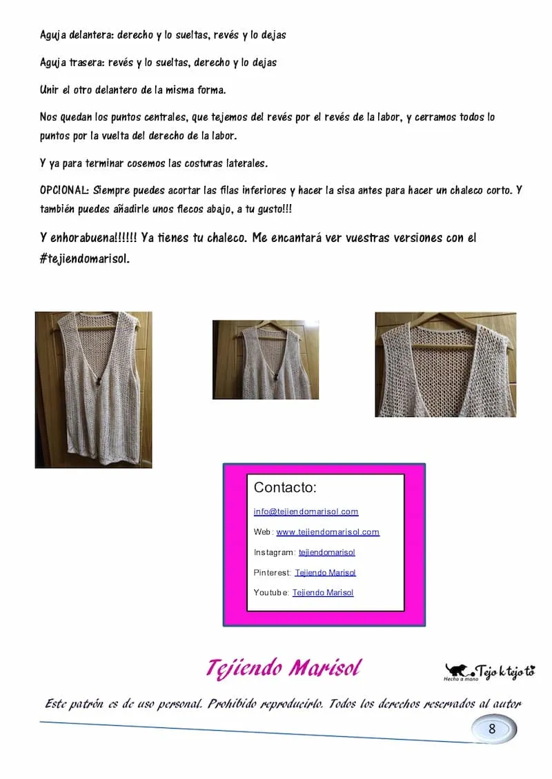 Muchas gracias por visitarme y por compartir vuestras chalecos con el #tejiendomarisol. Ahhhh y no os vayáis sin dejarme un comentario please!!!!