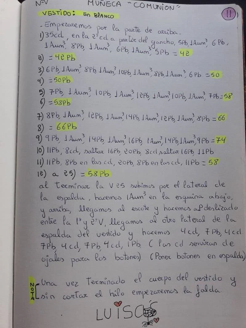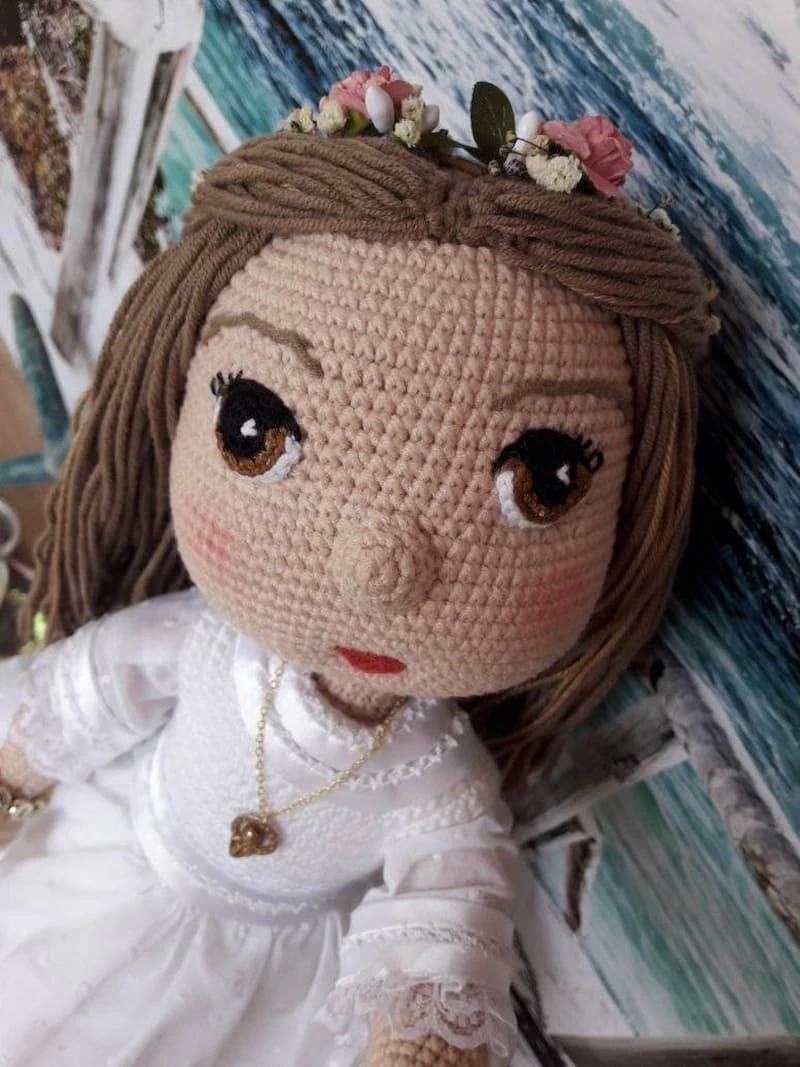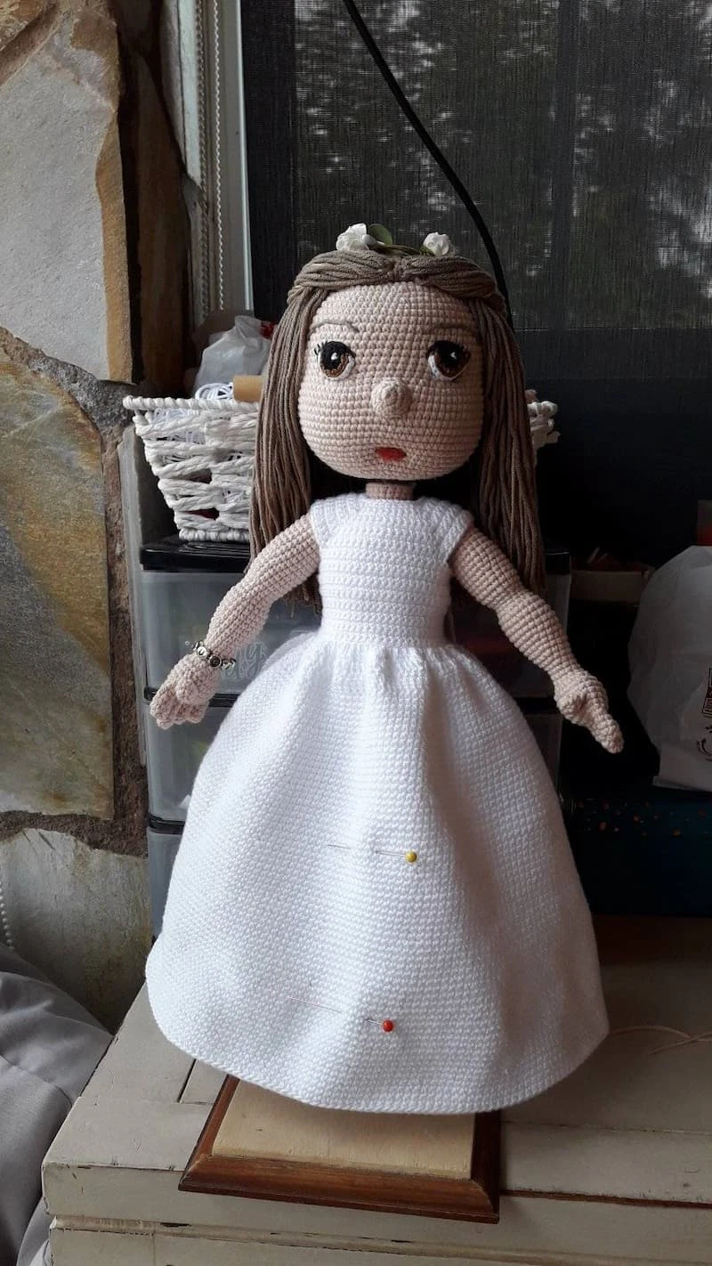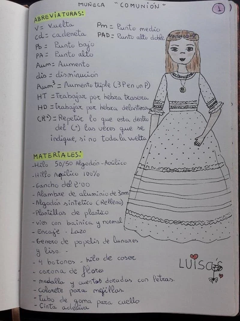 Patrón gratis de esta preciosa muñeca de Comunión amigurumi a crochet. Es un diseño de Luisa María Arango Pérez, que me ha dado permiso para publicaros aquí sus bonitos diseños y patrones hechos a mano por ella con todo detalle. Si clicáis en su nombre os he puesto el enlace a su página en Facebook donde publica sus diseños y donde podéis agradecerle su generosidad por compartirlos. Espero que os guste esta serie de muñecas que iré publicando. Son bastante fáciles pero es necesario tener conocimientos y haber hecho ya varios amigurumis, para poder entender mejor las instrucciones.
