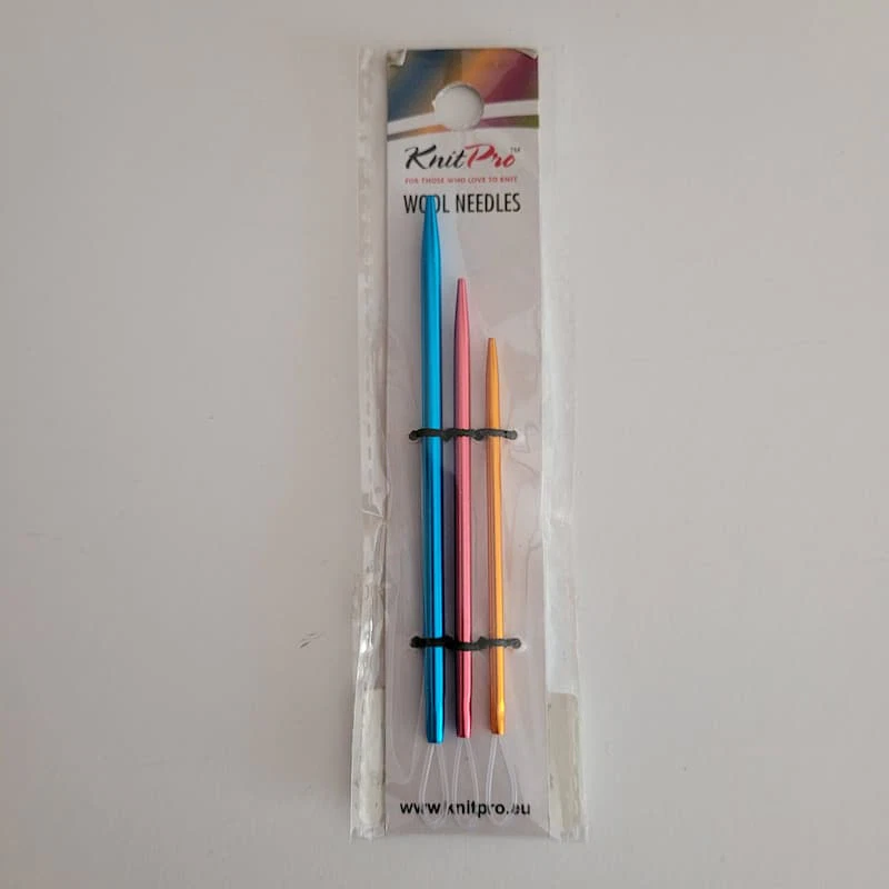Agujas para coser lana de KnitPro, fabricadas en aluminio, con un excelente acabado metalizado que deslizará perfectamente sobre tus materiales. Cada pack contiene 3 agujas en los grosores: 2.25 mm, 2.75 mm y 3.25 mm.