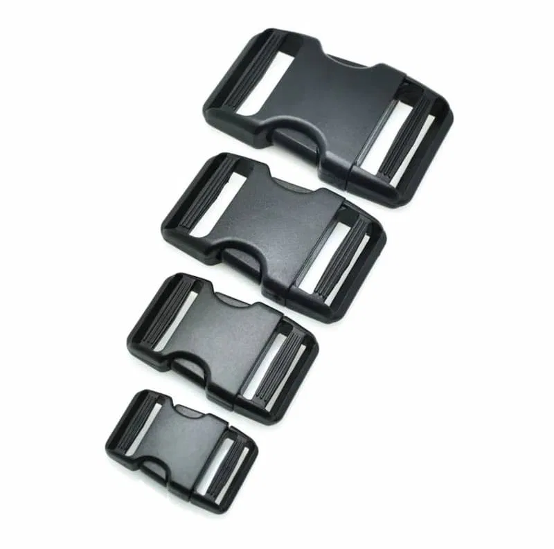 Cierres para bolsos y mochilas de liberación lateral en color negro y medidas de 20 y 25 mm.