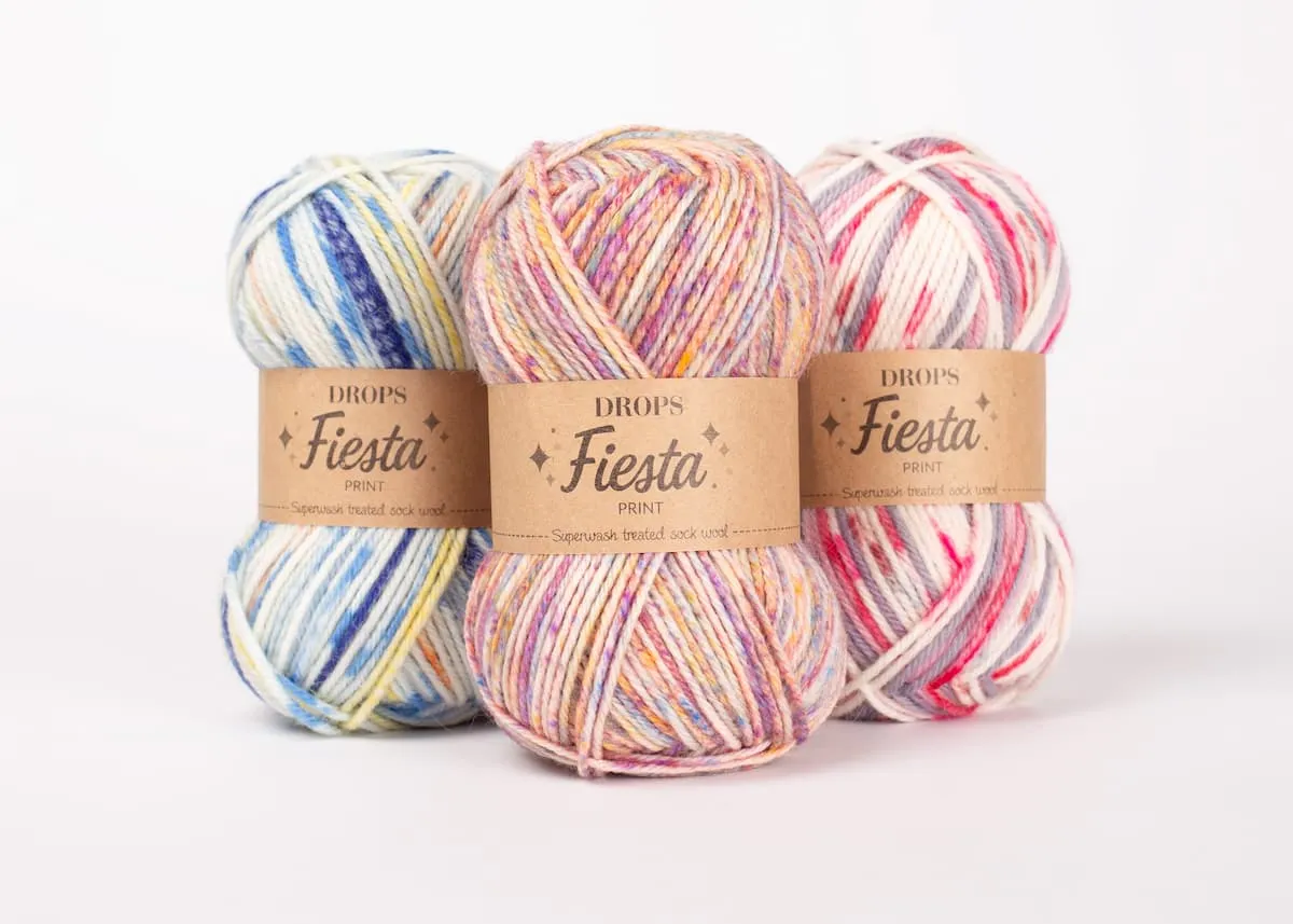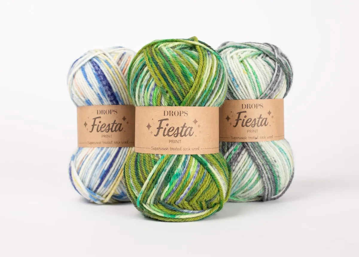 Los colores de la gama print en DROPS Fiesta tienen una apariencia como teñidos a mano, con leves variaciones en el patrón y matices, esto significa que ningún ovillo se verá exactamente igual a otro. Estas variaciones no son defectos, sino una característica de la técnica de teñido usada en el hilo.