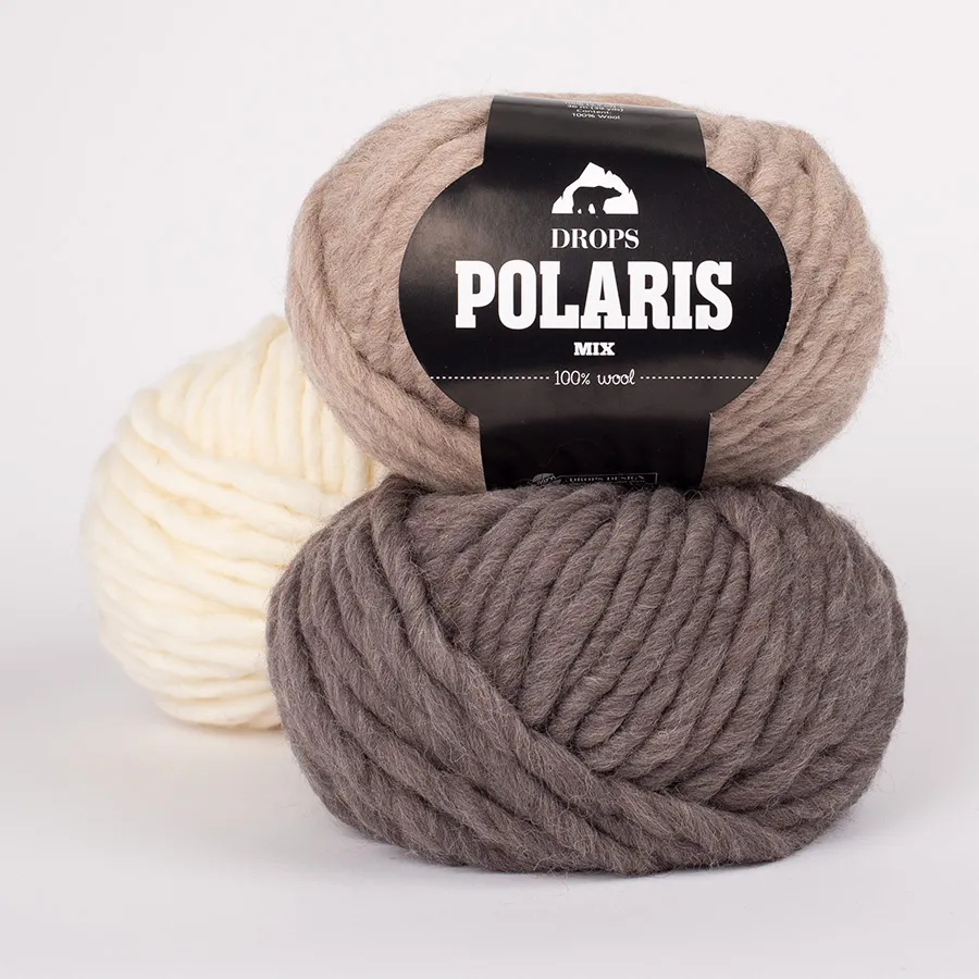 Compuesto por una única hebra e hilado en la misma lana suave que DROPS Snow, DROPS Polaris es especialmente indicado para proyectos de interiores así como para prendas para usar al aire libre, tales como gorros, bufandas y ponchos. Un hilo fabuloso para quien gusta trabajar con agujas gruesas, DROPS Polaris se teje muy rápido y con la misma tensión de 2 hilos DROPS Snow.