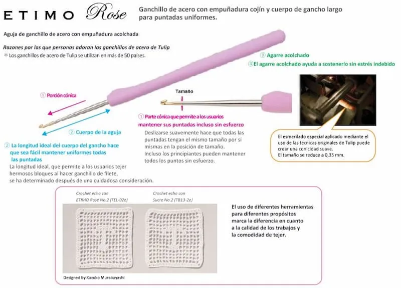 Juego de agujas de ganchillo rosa ETIMO con mango de cojín.