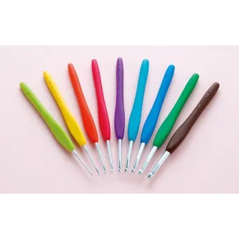- 6 ganchillos de acero plateado: 0.60, 0.75, 0.90, 1.00, 1.25, y 1.50 mm.