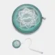 Estuche de color verde azulado con diseño de mandala en la parte superior.