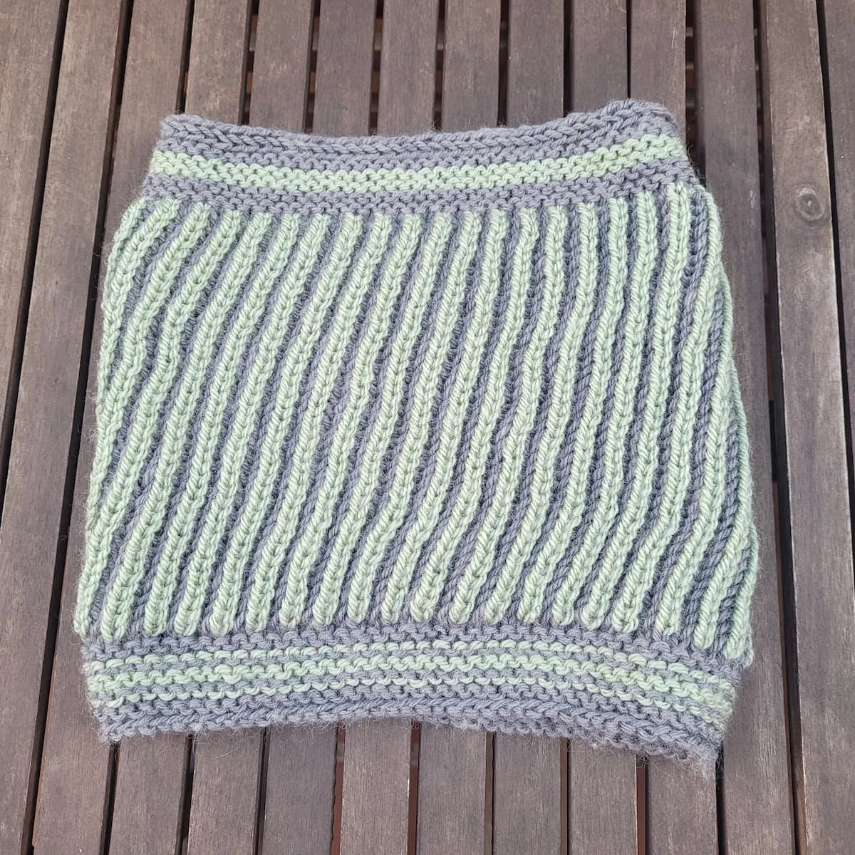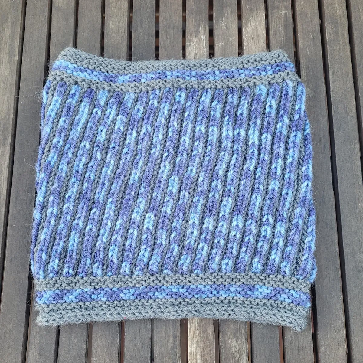 Confeccionado con 2 colores irresistibles de lana, que contrasten, este cuello no solo te mantendrá abrigada, sino que también te sumergirá en la magia del punto brioche, ¡perfecto para tejedoras intermedias en busca de un desafío emocionante!